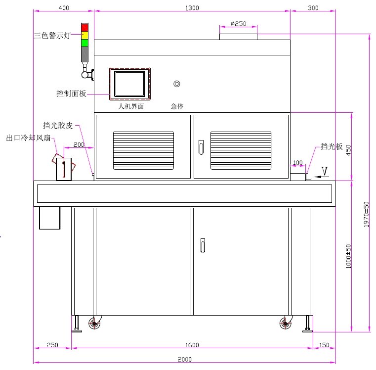 2、UV錄燈總長:900mm、弧長800mm