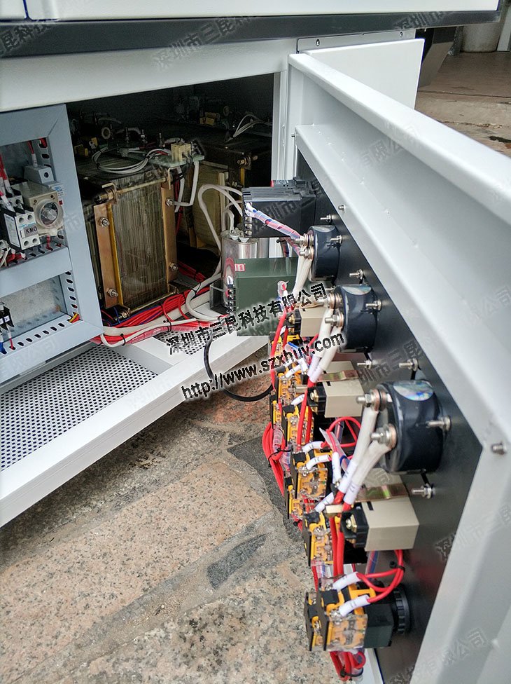 12、經(jīng)常檢查三燈uv固化機(jī)插頭與插座接觸是否良好,如三燈uv固化機(jī)正常運(yùn)行時,發(fā)現(xiàn)電纜發(fā)熱發(fā)燙,我們一定要停機(jī),來及時的更換電纜,以免發(fā)生火災(zāi)。