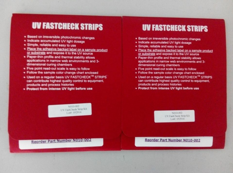 UV測試紙的使用是一種簡單有效用以測試UV強度的方法。在測試紙上有五個小格,分別可以對不同強度的UV光作出反應(yīng)并改變顏色。用此種測試紙可以簡單方便地對UV光源進行檢測,從而斷定設(shè)備上的UV強度是否還足夠用來固化所需的產(chǎn)品。
